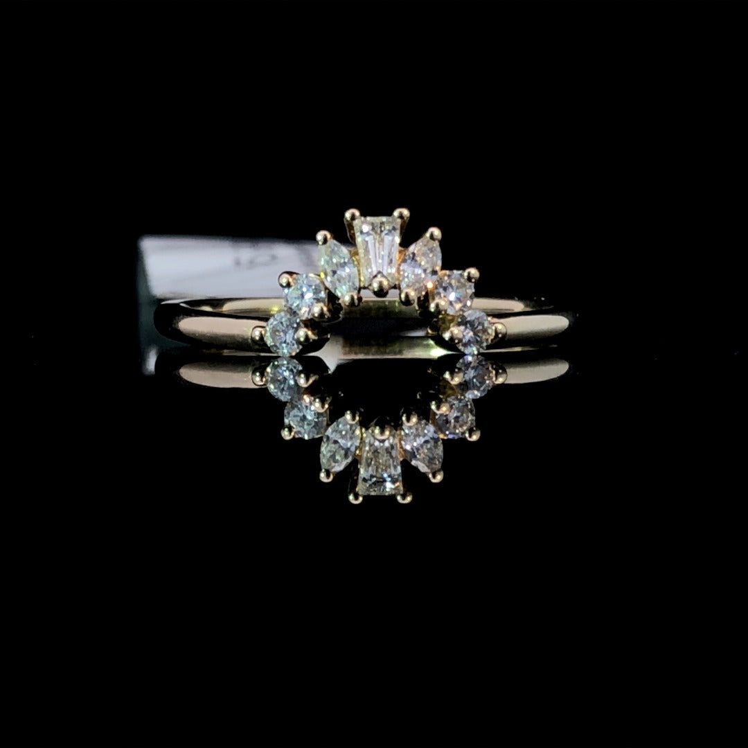 Bring an exquisite touch of brilliance to your everyday look with this luxurious ring. Crafted in 14kt yellow gold with .24ctw of diamonds set in a decorative design, its timeless elegance is sure to make an unforgettable impression. This ring is a size 6.5. If that size is not a perfect fit, first time sizing is free at the time of purchase.