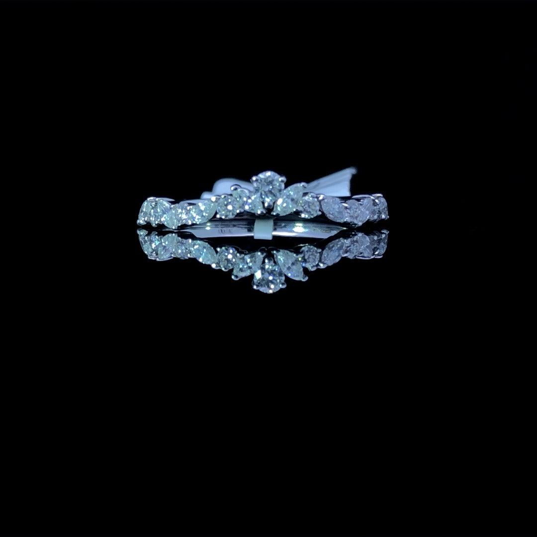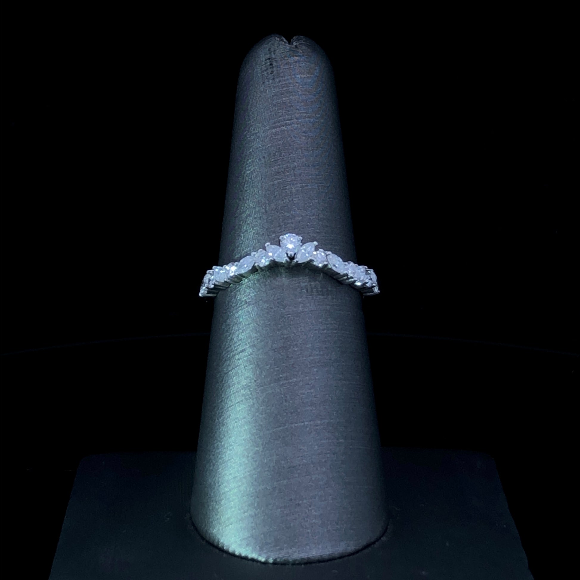 Celebrate years of love with this luxurious diamond anniversary band. Crafted from polished 14kt white gold, this exquisite piece features a unique curved design showcasing .49ctw of sparkling round and marquise diamonds in a decorative arrangement. A truly stunning and sophisticated accessory to commemorate your special bond. This ring is a size 7. If that size is not a perfect fit, first time sizing is free at the time of purchase.