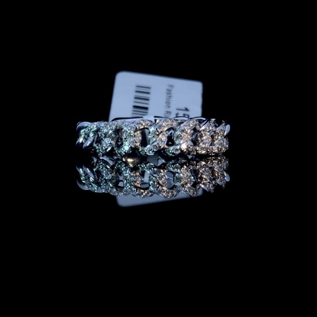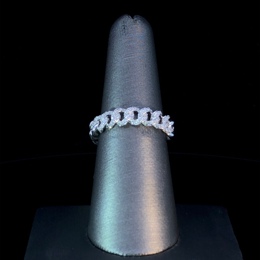 Be uniquely dazzling wearing this 14kt white gold band. Its links are perfectly accented by .28ctw of round diamonds, making you shine in every light. Make your look truly special with this timeless diamond ring. This ring is a size 7. If that size is not a perfect fit, first time sizing is free at the time of purchase.