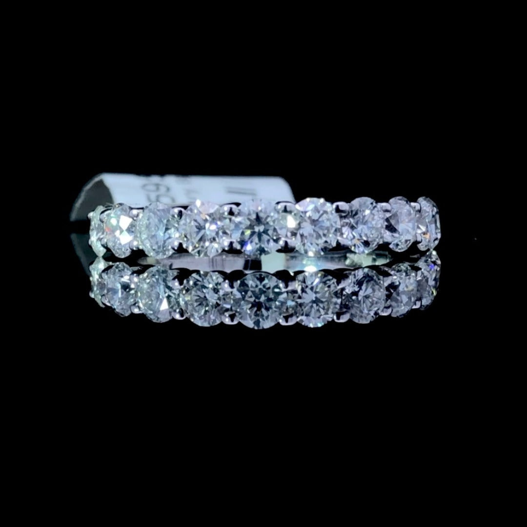 This classic diamond band is an homage to true luxury. Featuring 1.50ctw of shimmering round diamonds set in 14kt white gold, it's the perfect way to elevate any style! Ignite your wardrobe now! This ring is a size 7. If that size is not a perfect fit, first time sizing is free at the time of purchase. Additional sizing fees may apply.