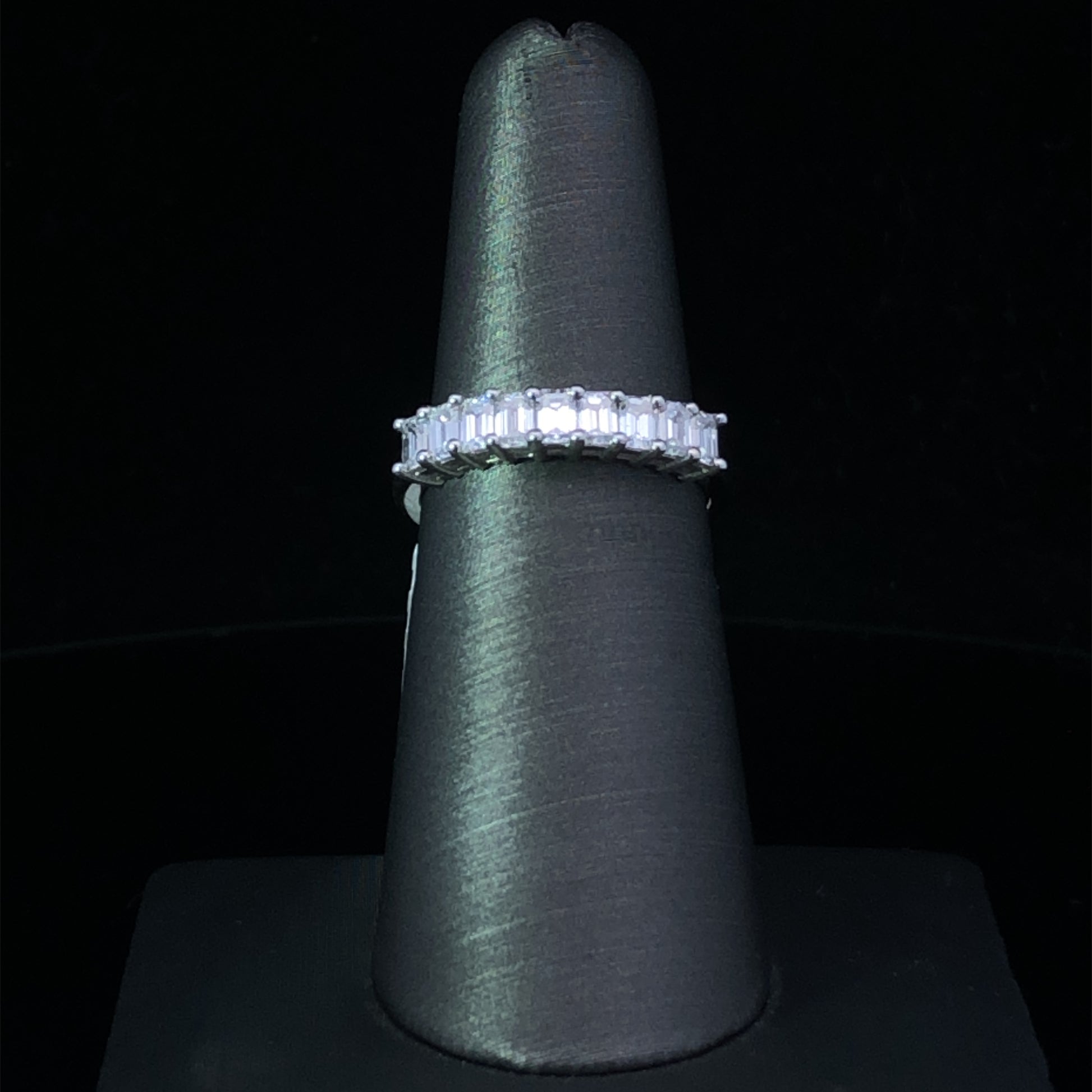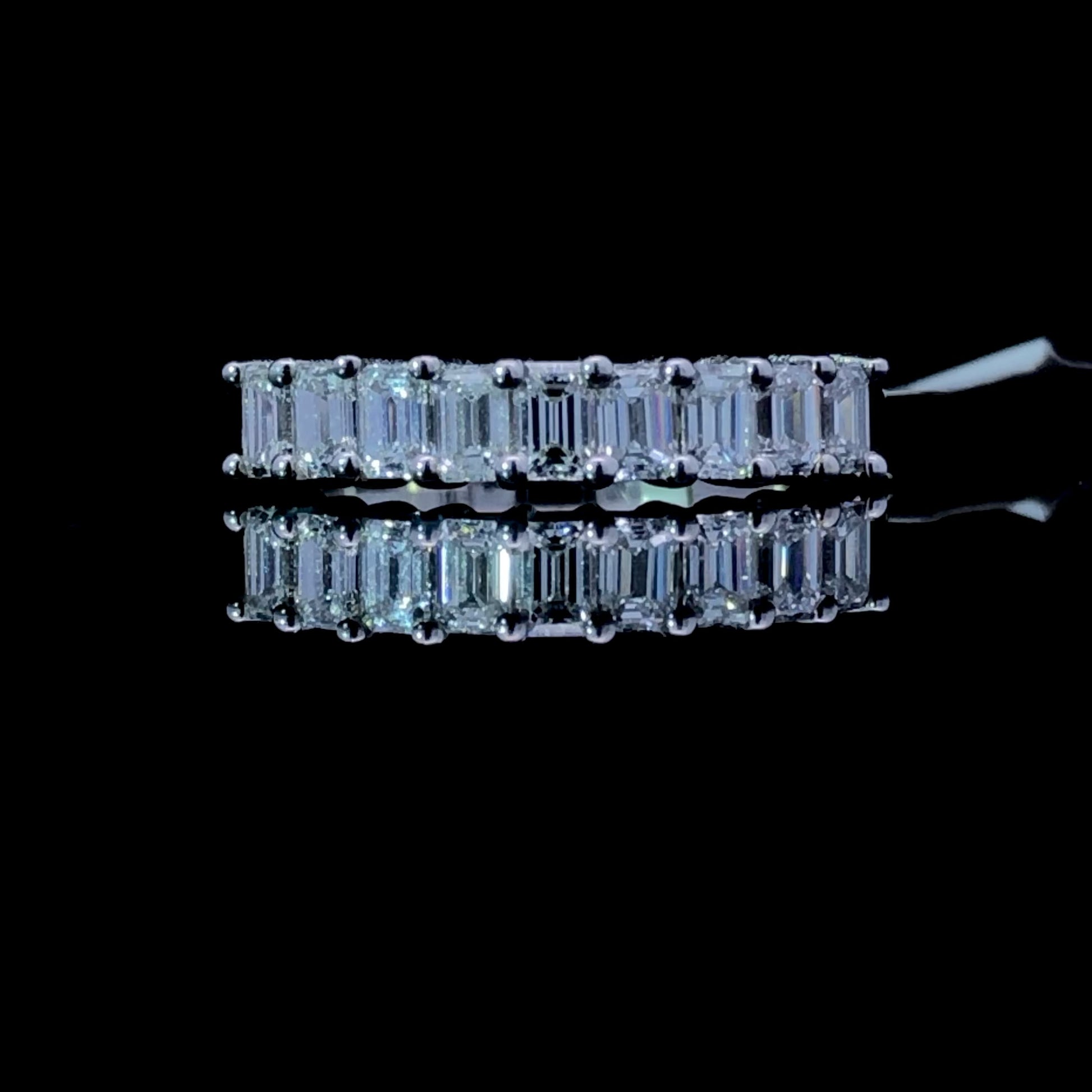 Add a sparkle to your collection with this exquisite diamond band! Crafted with .96ctw of emerald cut diamonds in 14kt white gold, this beautiful piece will add a dazzling touch to any outfit and occasion. Shine bright with this elegant design! This ring is a size 6.25. If that size is not a perfect fit, first time sizing is free at the time of purchase. Additional sizing fees may apply.