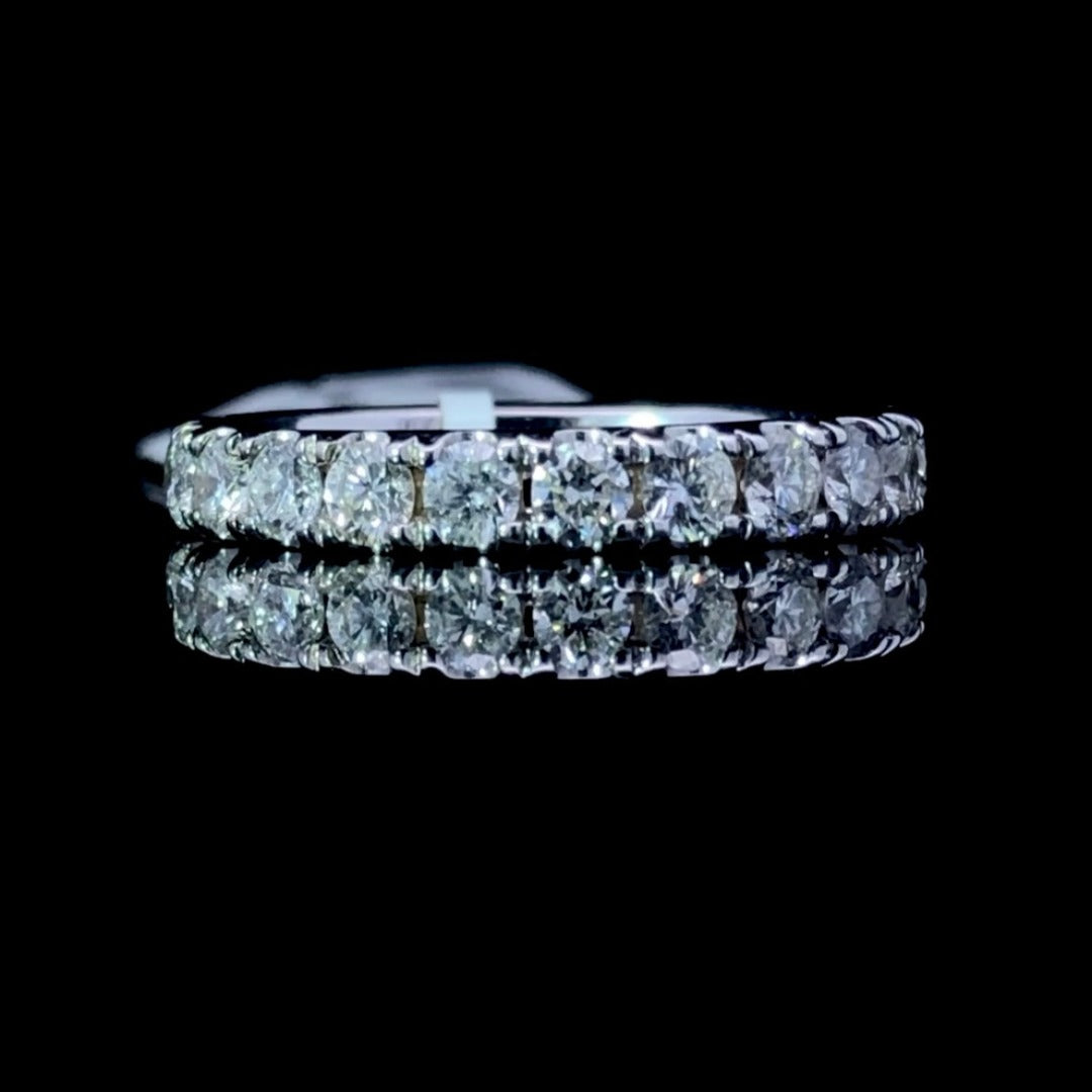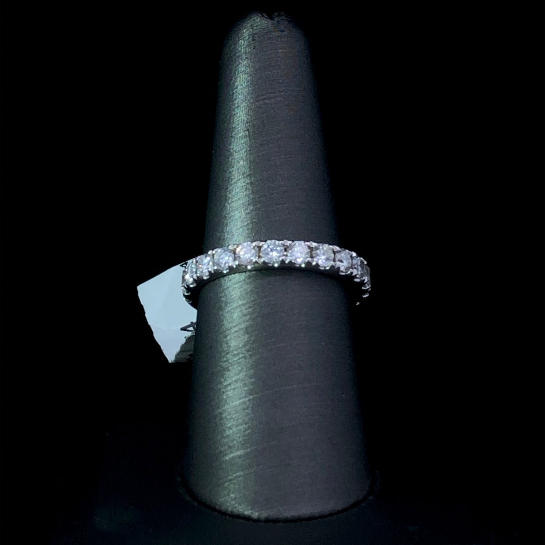 Elevate your style with this timeless diamond band. Featuring 1.00ctw of round diamonds set in 14K white gold, it sparkles with sophistication and elegance. Transform any look with this exceptional piece of jewelry - a must-have for any collection! This ring is a size 7.75. If that size is not a perfect fit, first time sizing is free at the time of purchase. Additional sizing fees may apply.