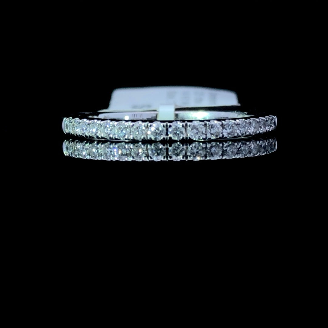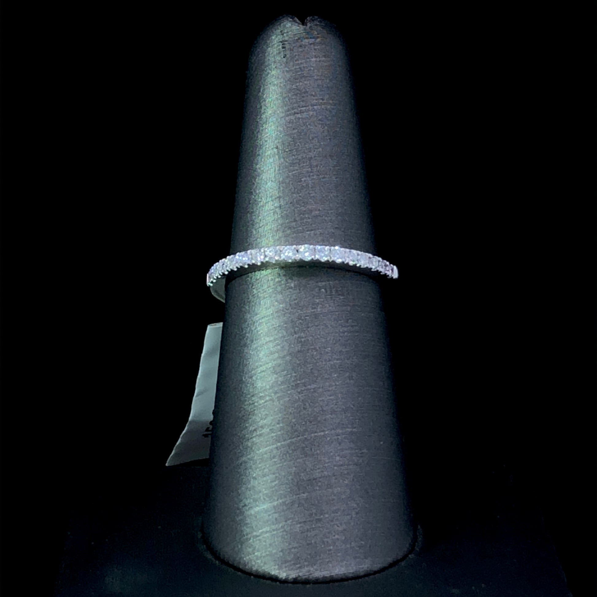 Enhance your elegant look with this exquisite diamond band. Crafted of 14kt white gold, it's set with a stunning .25ctw of round diamonds for a timeless, exquisite sparkle. An elegant addition to any outfit! This ring is a size 7.50. If that size is not a perfect fit, first time sizing is free at the time of purchase.